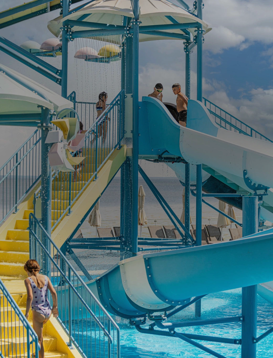 Влітку працюють дитячі басейни та великий дитячий аквапарк для розваг з малечею.